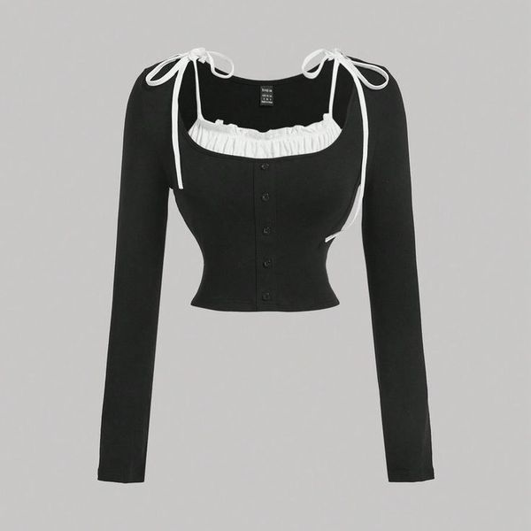 کراپ آستین بند پینترستی دو رنگ یقه چین دار