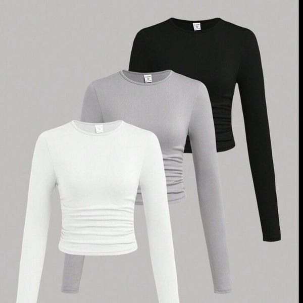 کراپ آستین بلند یقه گرد