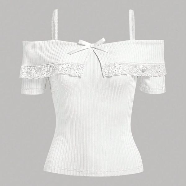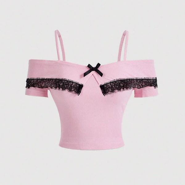 کراپ یقه قایقی گیپور دار آستین کوتاه